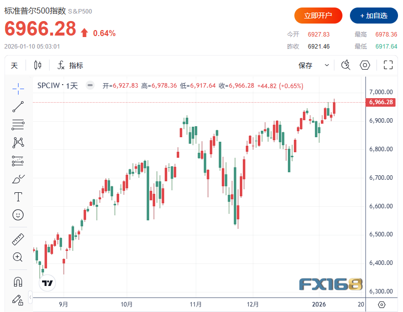 FX168财经报社(北美)讯 周五(1月9日),美国股市在芯片股与“价值板块轮动”推动下再度刷新历史纪录。尽管12月非农就业新增不及预期,但失业率回落显示劳动力市场并未快速恶化,市场对今年降息路径的预期基本稳定,美股在2026年首个完整交易周实现全线周涨。