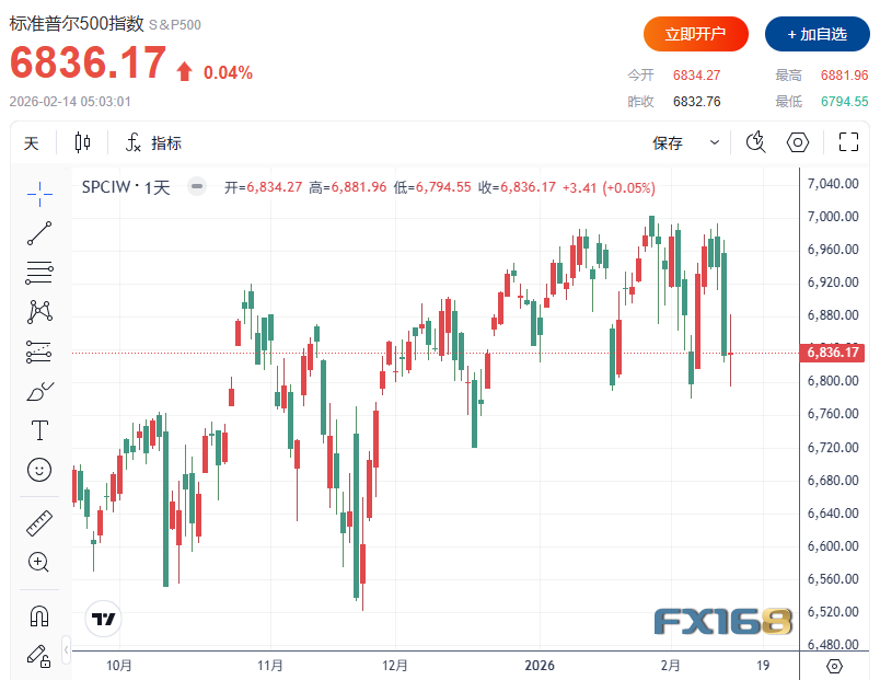 标普500指数上涨0.05%,收于6,836.17点;纳斯达克综合指数下跌0.22%,收于22,546.67点;道琼斯工业指数上涨48.95点,涨幅0.10%,收于49,500.93点。