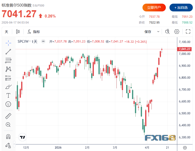 FX168财经报社(北美)讯 在市场对伊朗战争可能达成解决方案的乐观预期推动下,美国股市周四(4月16日)再度走高,标普500指数和纳斯达克综合指数双双刷新历史新高,并延续了本周以来的强劲涨势。